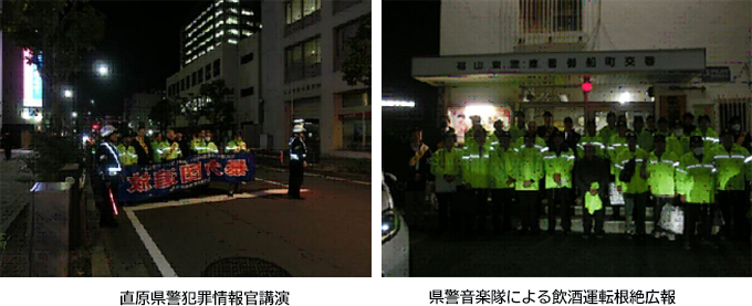 ○ 巡回指導 福山東警察署御船交番前から暴力団排除特別強化地域となる「福山松浜地区」