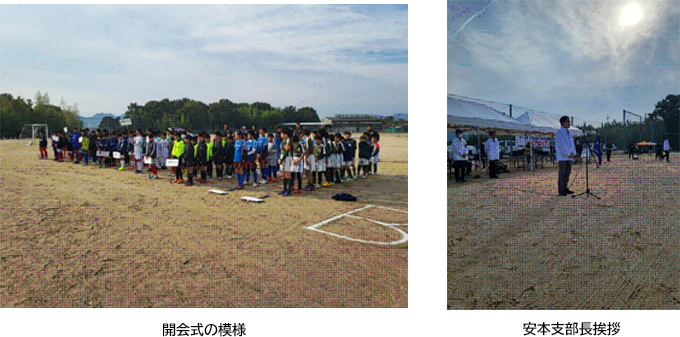 東広島市遊技業防犯協力会の安本政基会長は、東広島市暴力監視追放協議会会長を兼務しており、この度、「第21回東広島市暴力監視追放協議会会長杯(CPカップ)少年サッカー大会」を開催しました。12チーム、約140人が参加し、開会式では、安本政基大会会長開会挨拶、東広島警察署長等が挨拶後、試合開始となりました。