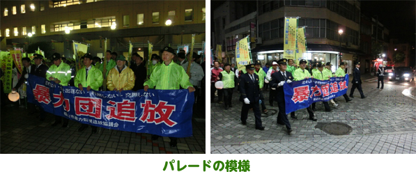 福山東遊技業防犯協力会(支部長富山長鎬)は、福山市、福山東地区防犯組合連合会、福山市暴力監視追放協議会等主催の年末警戒に参加し、福山市長が「誰もが安心・安全を実感できる福山市の実現を」と挨拶した後、暴力追放の横断幕を先頭にパレードを実施しました。