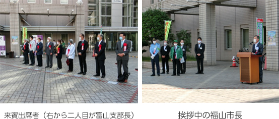 出発式には約80名が参加し、福山市長が「誰もが安心・安全を実感できる福