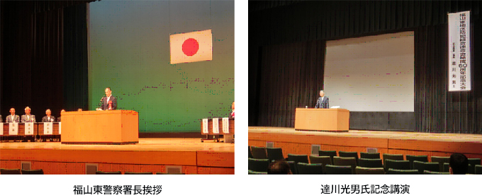 広島県遊技業防犯協力会連合会福山東遊技業防犯協力会(富山長鎬 支部長)、福山北遊技業防犯協力会(新井慶助 支部長)は、福山東地区防犯組合連合会結成60周年記念大会に参加し、今後も安全・安心で住みよい地域社会の実現を目指す活動に積極的に推進することとしました。大会では、功労者、功労団体表彰、警察音楽隊の演奏、元広島東洋カープ監督達川光男氏記念講演等が行われました。