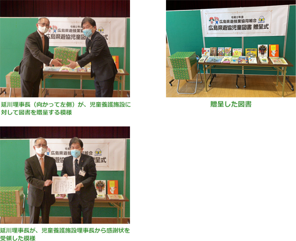 広島県遊技業協同組合(理事長 延川章喜)は、8月に実施した「広島パチンコ・パチスロファン感謝デー」の開催に併せ、社会貢献活動の一環として、県内全域の児童養護施設に図書を贈呈することとし、一つの児童養護施設において贈呈式を行いました。