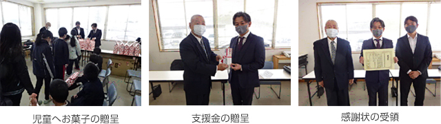 青年部会(延川然太部会長)は、令和4年10月5日(水)、青年部会が主催した「児童福祉 活動支援チャリティーゴルフコンペ」(東広島カントリークラブ)でのチャリティー金を活用し、児童養護施設へのクリスマス慰問を行ないました。通常、青年部会員10名くらいが訪問し、マジックショー、音楽会、工作、クリスマスケーキの会食等を行っていますが、新型コロナウイルス発生防止の観点から、延川部会長、森谷聡希副部会長、事務局員3名が訪問し支援金や子供たちへのお菓子をプレゼントしました。